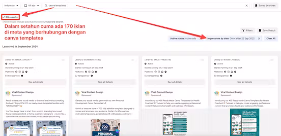 Lihat hasil dari pencarian di google dan meta ads berikut ini..